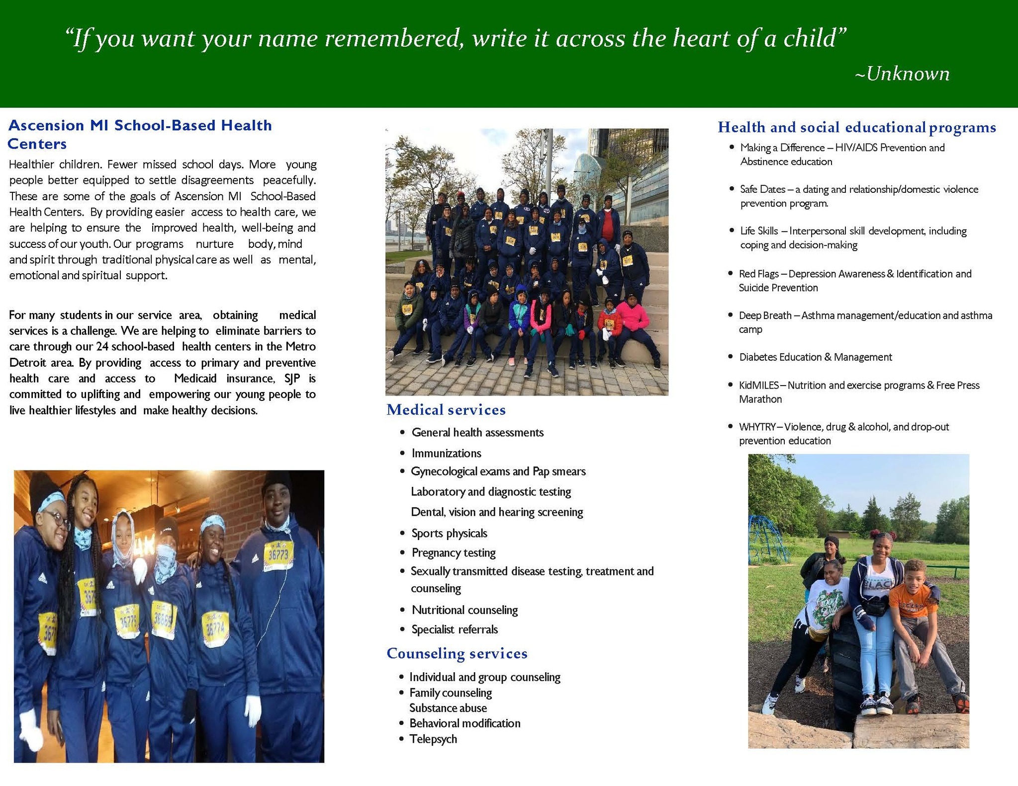 Henry Ford Health School-Based Health Centers & Services Offered